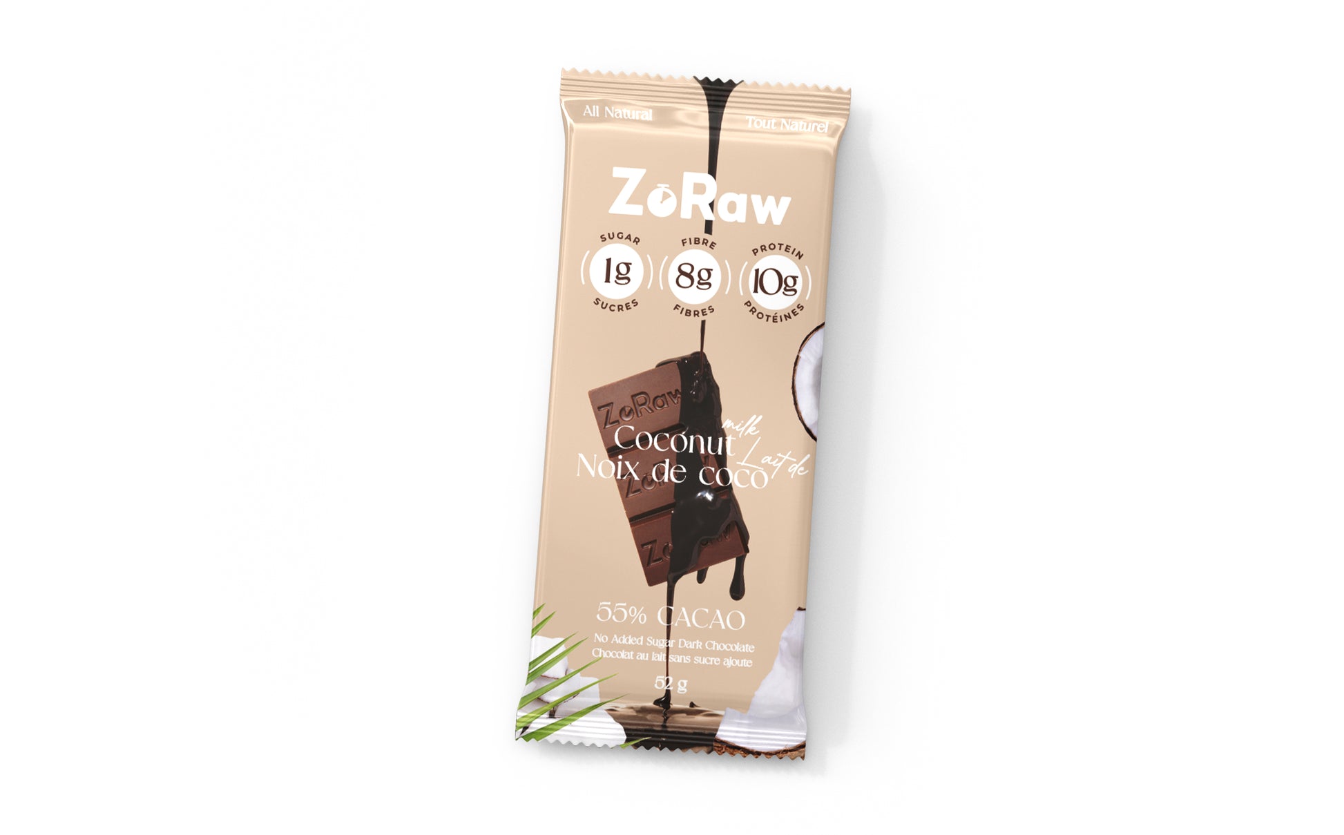 Ingredients: Organic Cocoa Blend (Cocoa Butter, Cocoa Mass), Erythritol, Coconut Milk Powder, Almond Protein, Inulin, Coconut Flakes, Sunflower Lecithin, Stevia Leaf Extract, Vanilla.